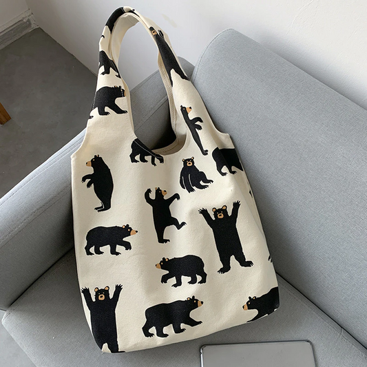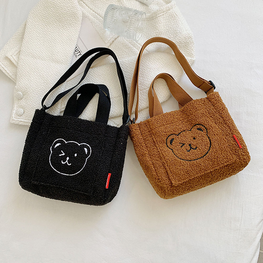 Embroidered Smiling Teddy Bear Bag (4 Colours)