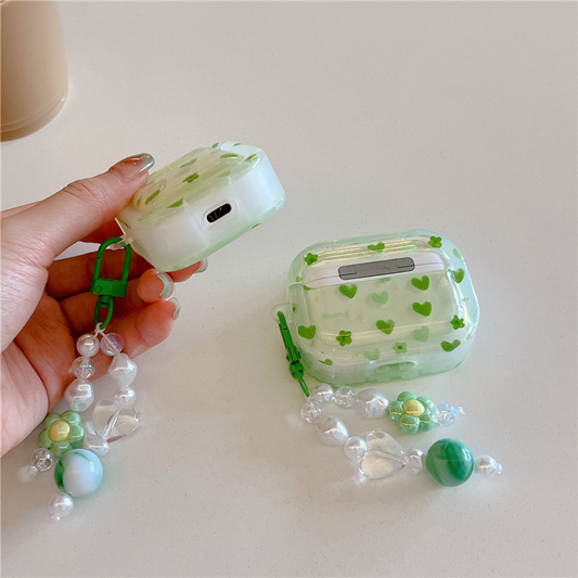 Green Hearts AirPods Case Cover Wth Charm Strap