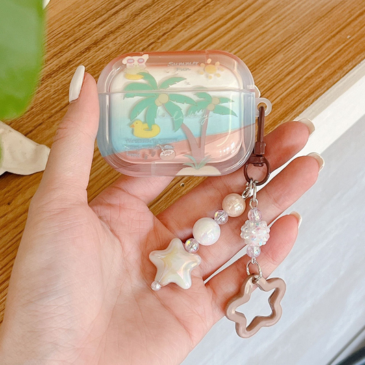 Summer Fun Palmtree AirPods Case Cover Wth Charm Strap