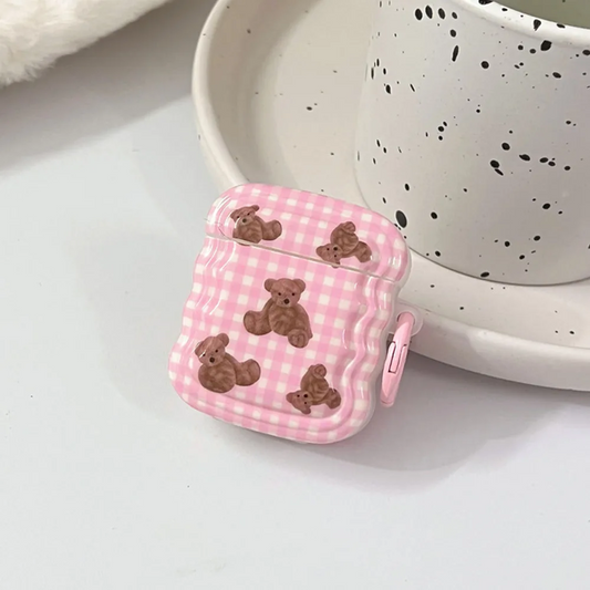 Wavy Gingham Teddy Bear AirPods Charger Case Cover