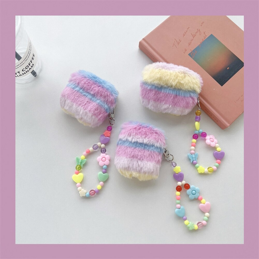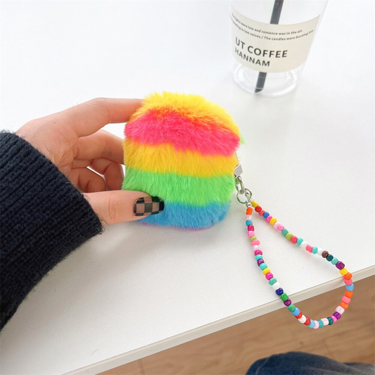 Furry Rainbow AirPods Charger Case Cover with Charm Strap (4 Models)