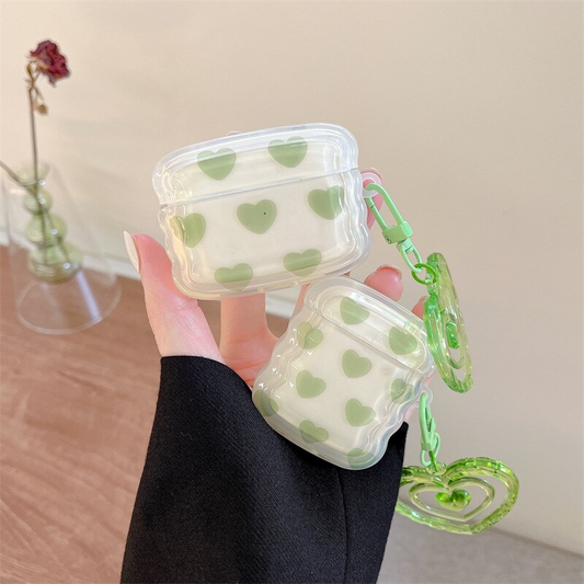 Y2k Green Hearts AirPods Charger Case Cover with Charm Strap