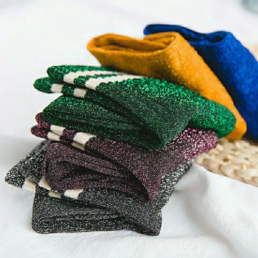 Sports Style Stripe Glitter Crew Socks (5 colours)