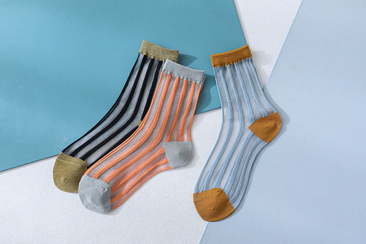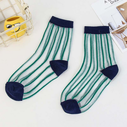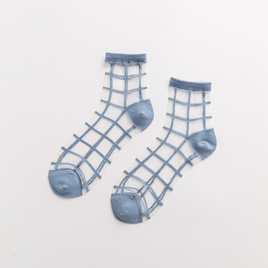 Transparent Pastel Grid Crew Socks (5 Colours)
