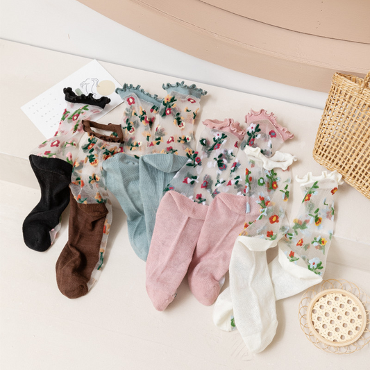 Transparent Ruffle Flower Crew Socks (5 Colours)