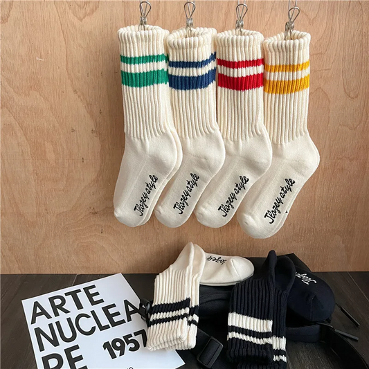 Vintage Style Stripe Sports Crew Socks (6 Colours)