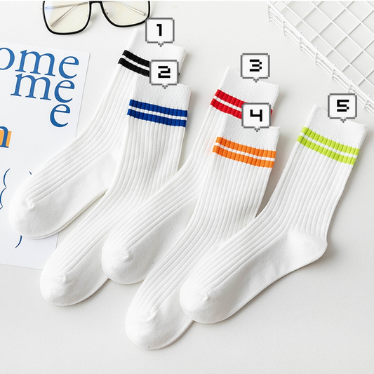 White Vintage Sports Style Stripe Crew Socks (5 Colours)