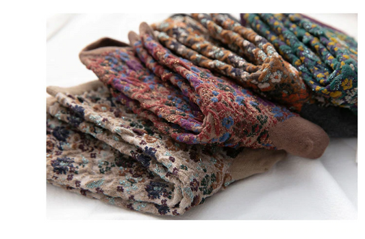 Winter Textured Flower Crew Socks (5 Colours)