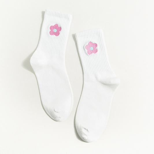 Embroidered Pop Flower Crew Socks (10 Colours)