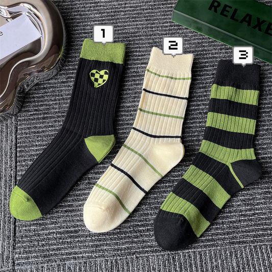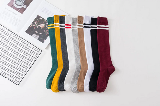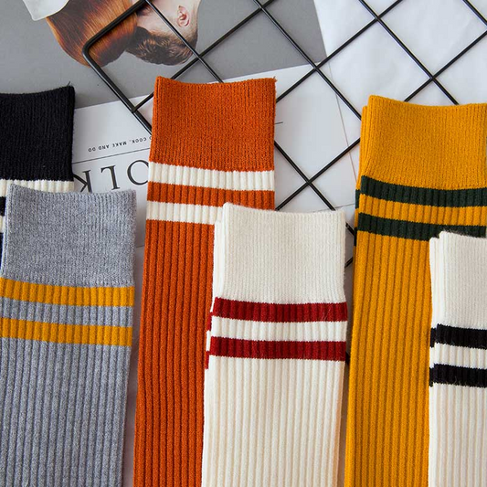High Vintage Style Stripe Crew Socks (6 Colours)