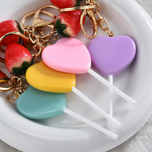 Heart Shaped Lollipop Clip Charm Keyring (4 Colours)