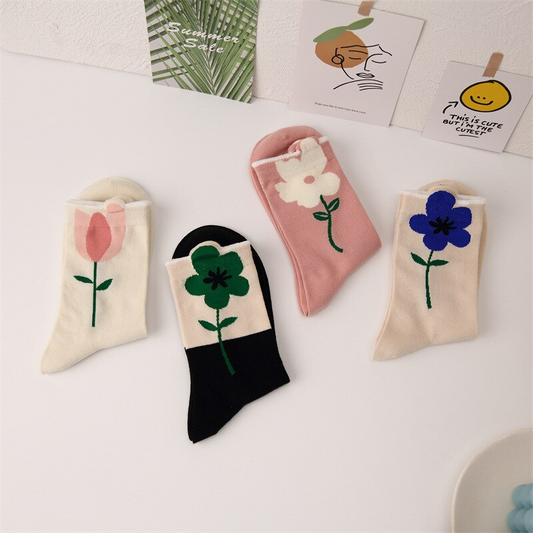Peeping Leaf Flower Crew Socks (4 Designs)