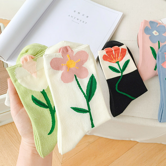 Peeping Leaf Flower Crew Socks (5 Designs)