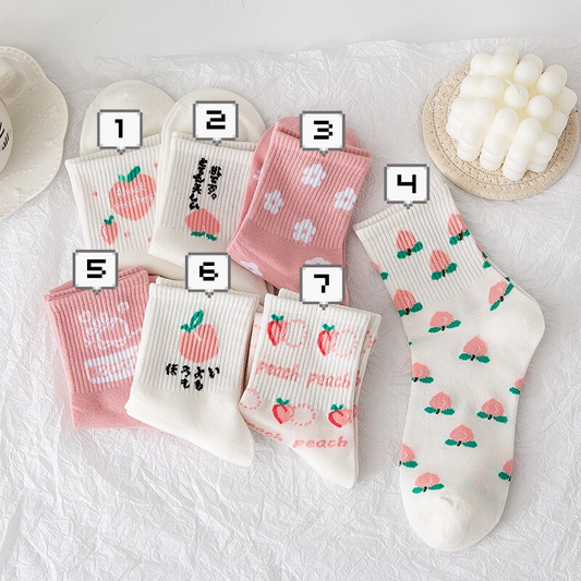 Pink Peach Party Crew Socks (7 Designs)