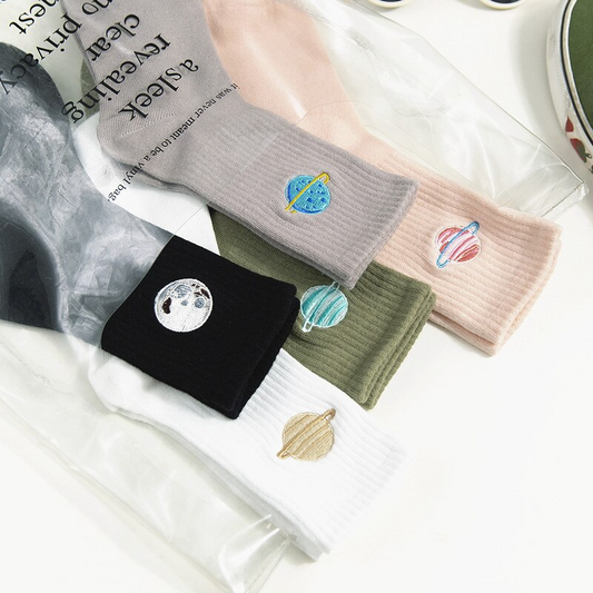 Planet Embroidery Crew Socks (5 Designs)