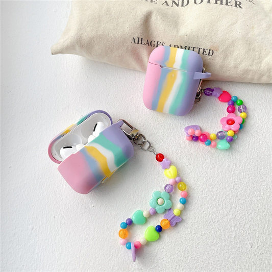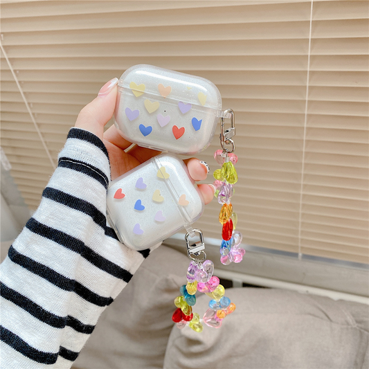 Rainbow Heart with Heart Charm Strap Airpod Case Cover