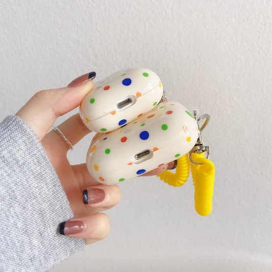 Rainbow Polka Dot Airpod Case Cover with Phone Cord Wrist Strap