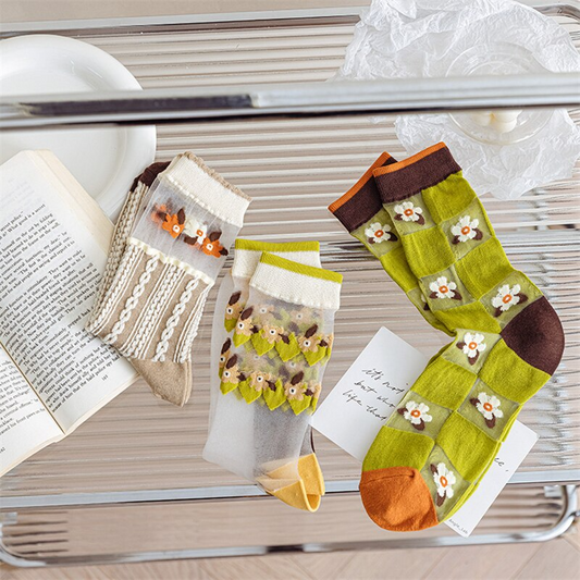 Sheer Cottagecore Pattern Crew Socks (3 Colours)
