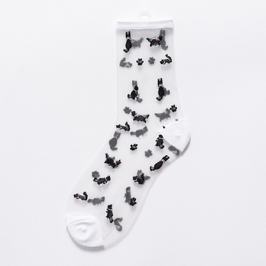 Sheer Embroidered Cat Pattern Crew Socks (2 Colours)