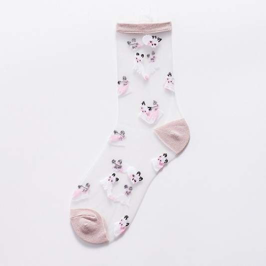 Sheer Embroidered Fox Pattern Crew Socks (2 Colours)
