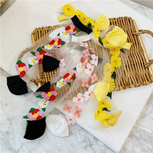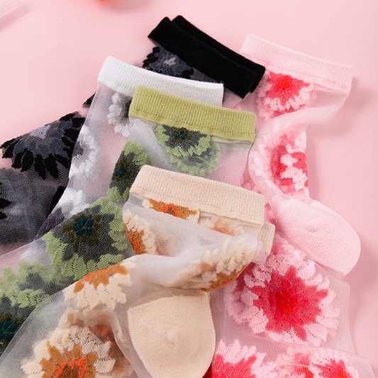 Sheer Flower Wreath Crew Socks (3 Colours)