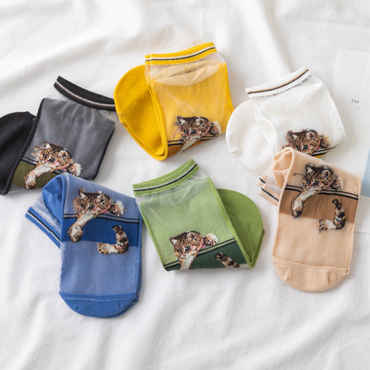 Sheer Embroidered Kitten Sneaker Socks (6 Colours)