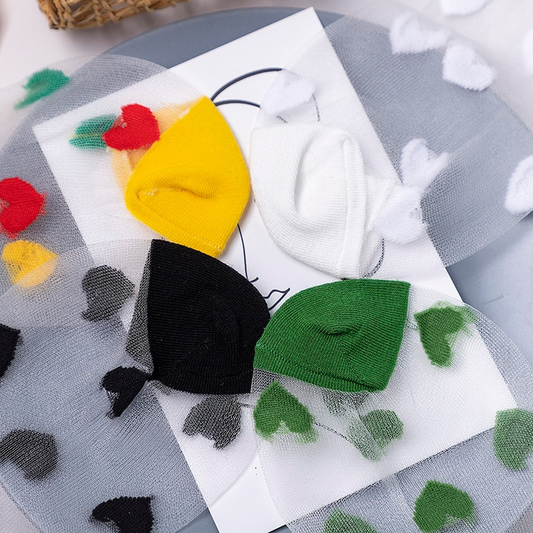 Sheer Heart Pattern Crew Socks (4 Colours)