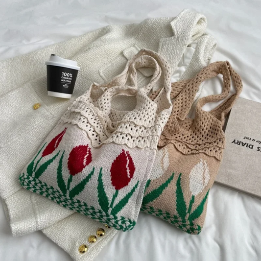 Retro Knitted Tulips Tote Bag (4 Colours)
