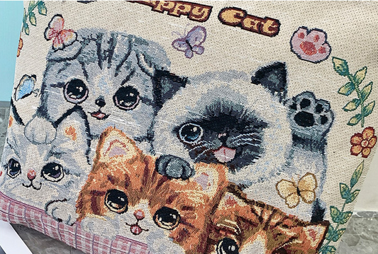Old School Cat Embroidery Tote (5 Designs)
