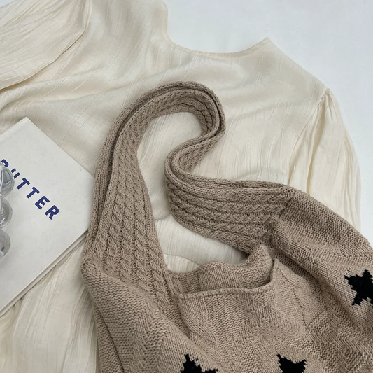 Retro Knitted Star Tote Bag (5 Colours)
