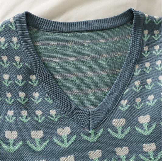 Patty Ribbon Tie Floral Sweater Vest (3 colours)