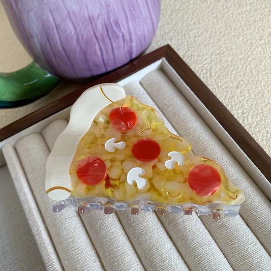 Glossy Pepperoni Pizza Acrylic Hair Claw Clip