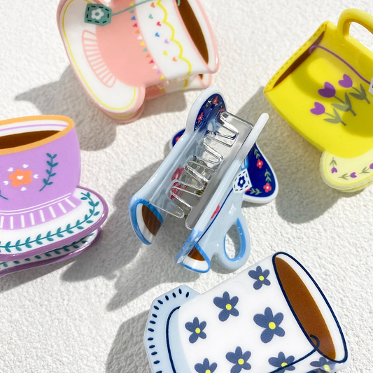 Cup of Tea Glossy Acrylic Hair Claw Clip (5 Designs)