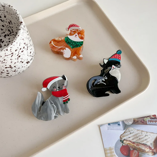 Cozy Winter Kitty Acrylic Hair Claw Clip (3 Designs)