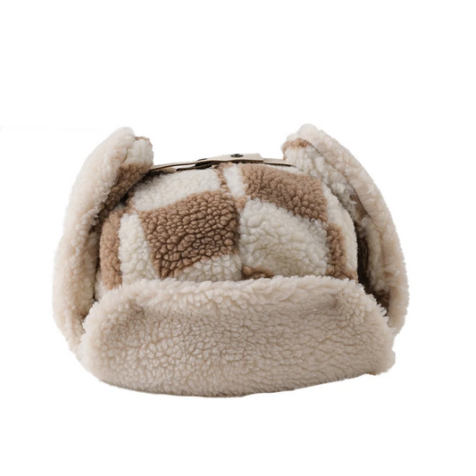 Teddy Fur Checkerboard Earflap Trapper Hat (4 Colours)