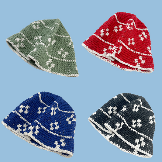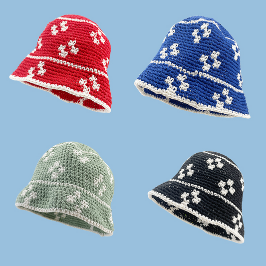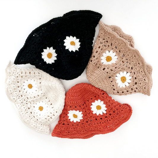 Crochet Floral Pattern Bucket Hat (4 Colours)