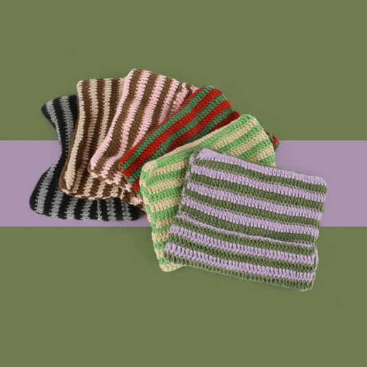 Crochet Striped Kitty Ear Beanie Hat (10 Colours)