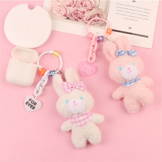 Gingham Bunny Animal Character Plush Keychain (3 Designs)