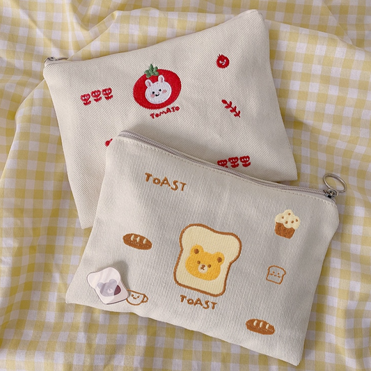 Embroidered Snack Animal Zipper Pouch (2 Designs)