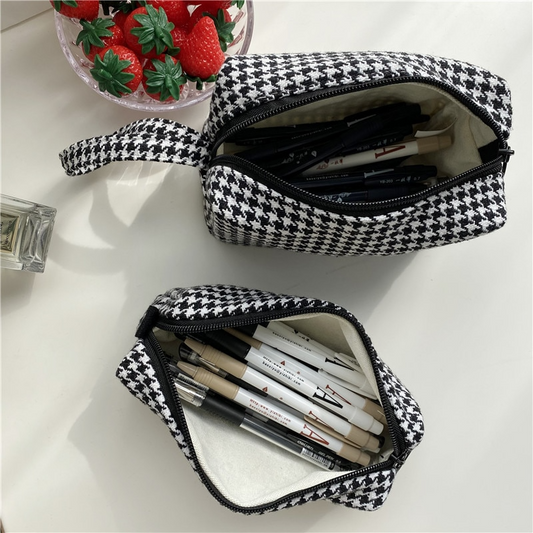 Houndstooth Pattern Zipper Pouch (3 Colours)