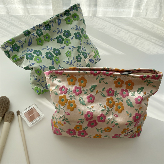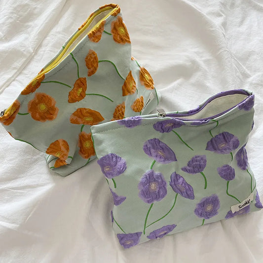 Textured Flower Pattern Zipper Pouch (2 Colours)