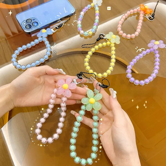 Glossy Beaded Daisy Phone Strap (7 Colours)