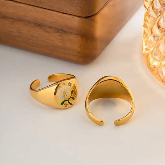 Flower Seal Matching Ring and Necklace Set (4 Designs)