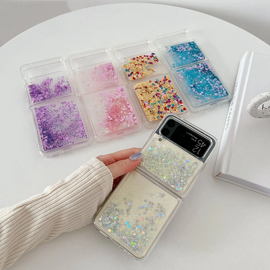 Liquid Quicksand Heart Glitter Galaxy Z Flip Phone Case (9 Colours)