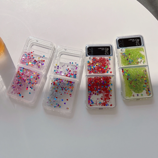Liquid Quicksand Heart Glitter Galaxy Z Flip Phone Case (9 Colours)