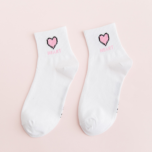 Golden Heart Embroidery Crew Socks (5 Colours)