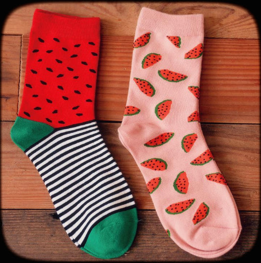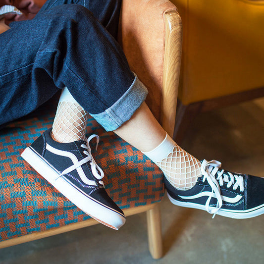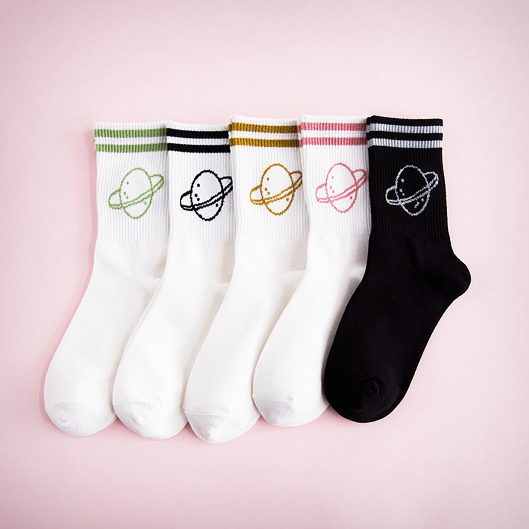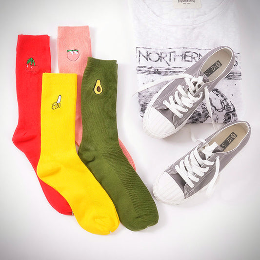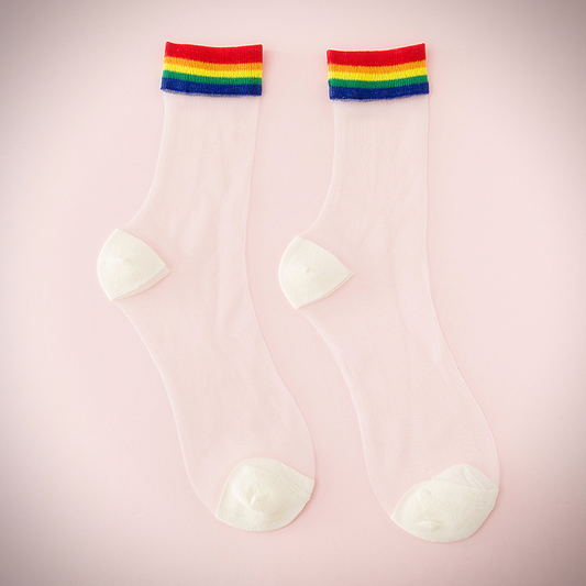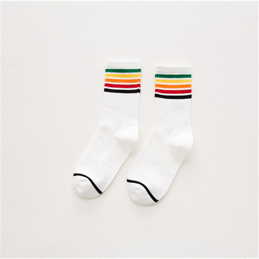 Retro Style Rainbow Cuff Crew Socks (3 Colours)