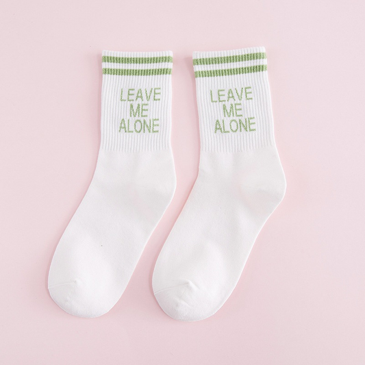Contrast Stripe "Leave Me Alone" Crew Socks