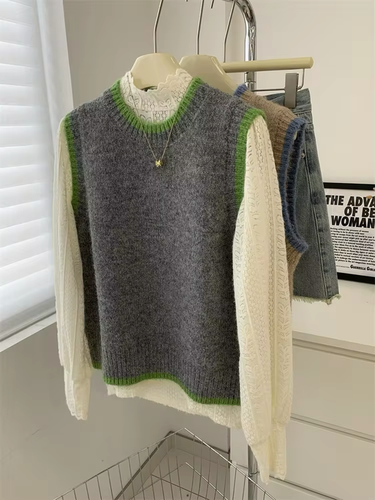 Contrast Stripe Knit Sweater Vest (2 colours)