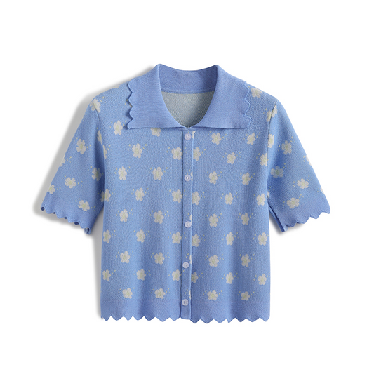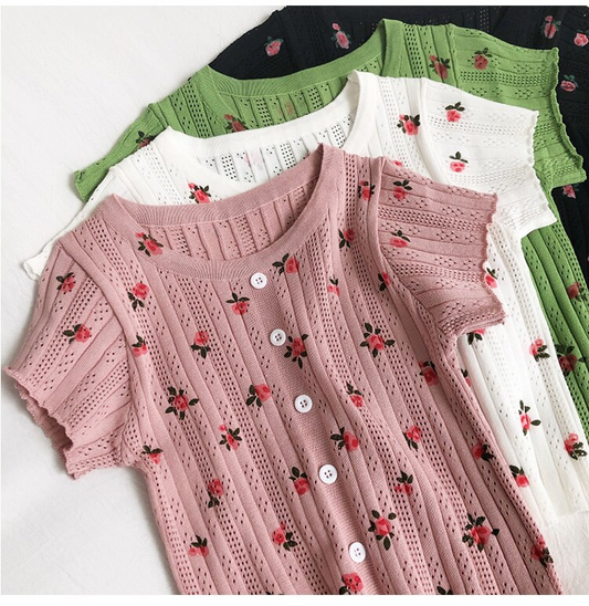 Knitted Ribbed Rose Pattern Tee (5 Colours)